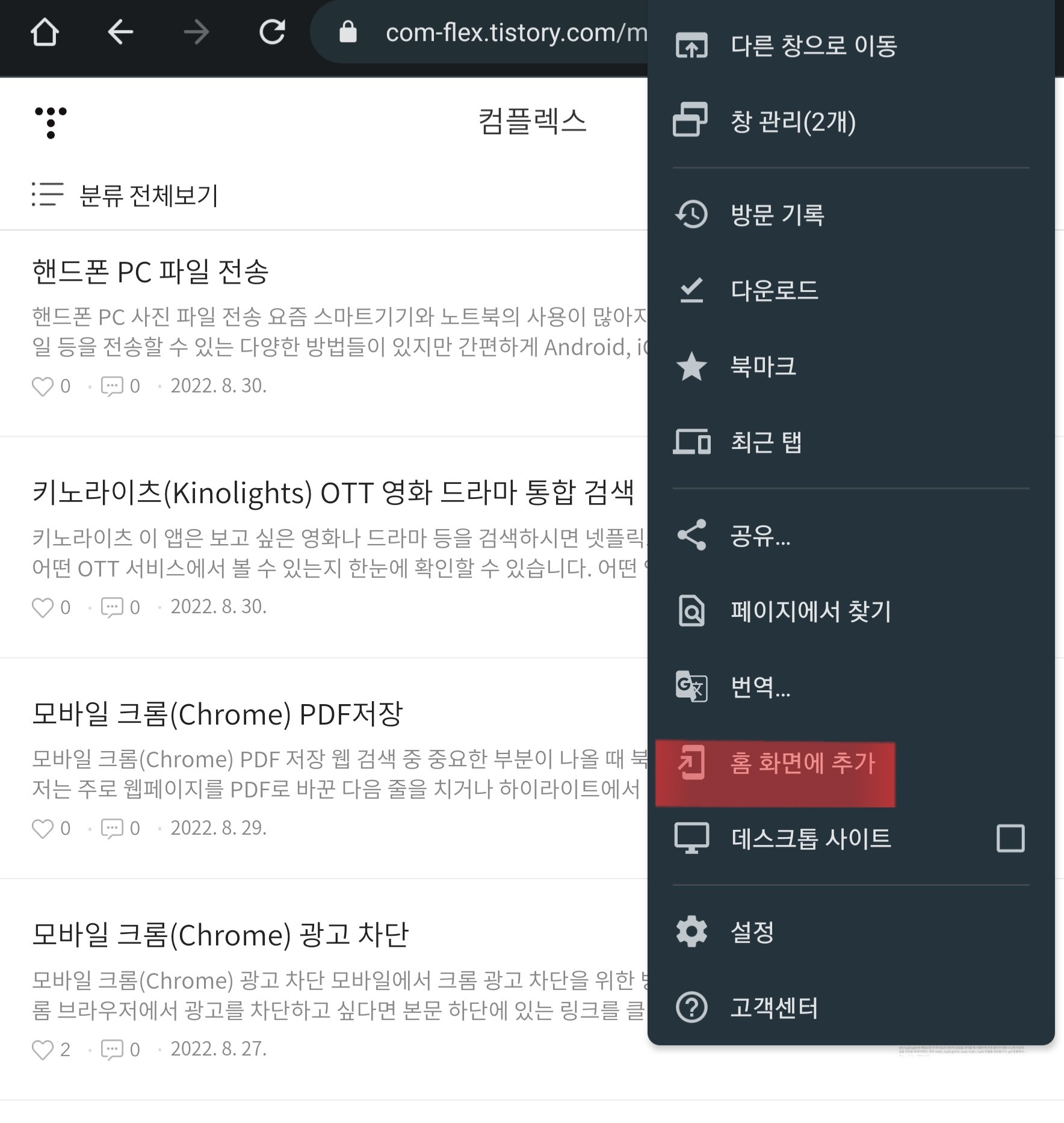 지금까지는 모바일 크롬 브라우저 앱에서 바로가기 추가하는 방법을 알아보았습니다.
